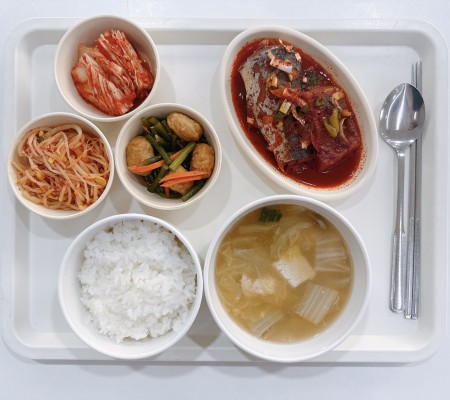 돈육고추장찌개 계란찜 새송이볶음 물파래무침 포기김치