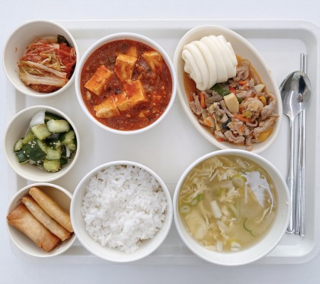 팽이계란국 고추잡채/꽃빵 마파두부 춘권튀김 백오이무침 포기김치