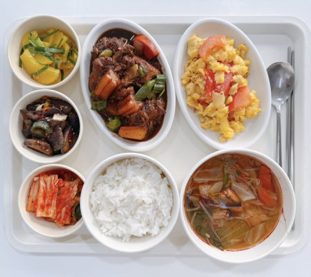 짬뽕국 짜장찜닭 토마토달걀볶음 가지나물 단무지무침 포기김치