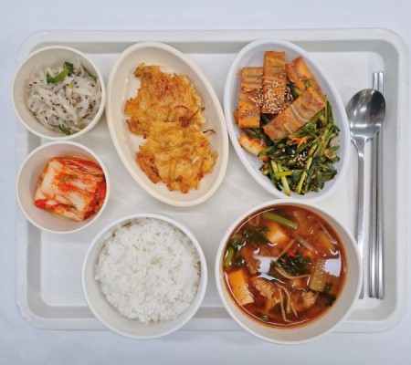 연포탕 가자미구이 애호박볶음 파래무침 포기김치