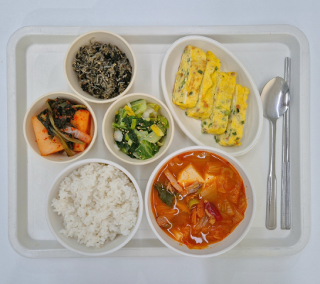 참치김치찌개 계란말이 자반멸치볶음 얼갈이무침 총각김치