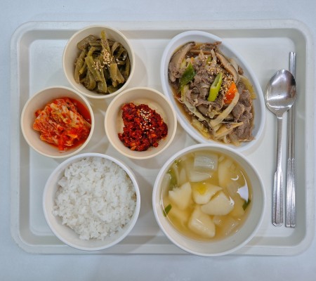 감자양파국 소불고기 궁채들깨볶음 씨앗젓갈 김치