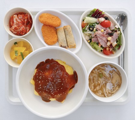 오므라이스 미소장국 시저샐러드 고로케 단무지무침 포기김치