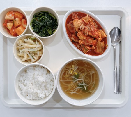 콩나물국 닭살김치조림 도라지볶음 시금치무침 깍두기