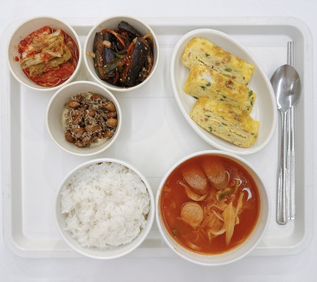 부대찌개 계란말이 가지나물 멸치땅콩조림 포기김치