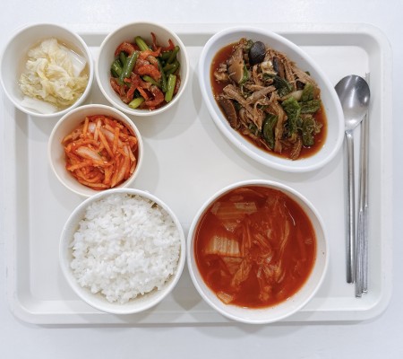 순두부찌개 가자미구이 새송이짬뽕볶음 고사리볶음 포기김치
