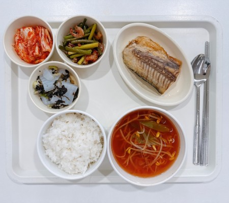 얼큰콩나물국 삼치구이 건새우마늘쫑볶음 청포묵무침 포기김치