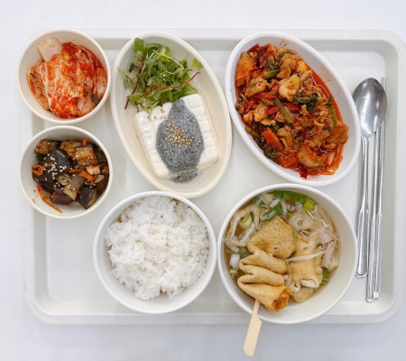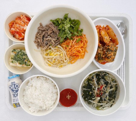 불고기비빔밥 미역냉국 김말이강정 계란찜 요구르트 포기김치