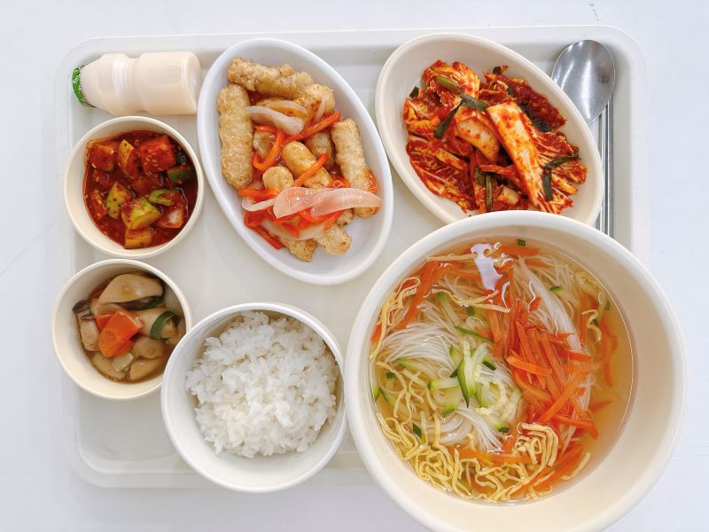 잔치국수 미니밥 탕수육 새송이들깨찜 오이무침 요구르트 배추겉절이