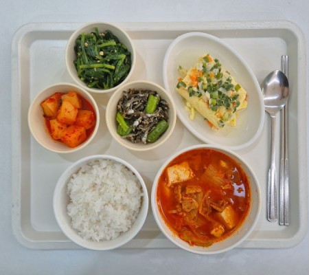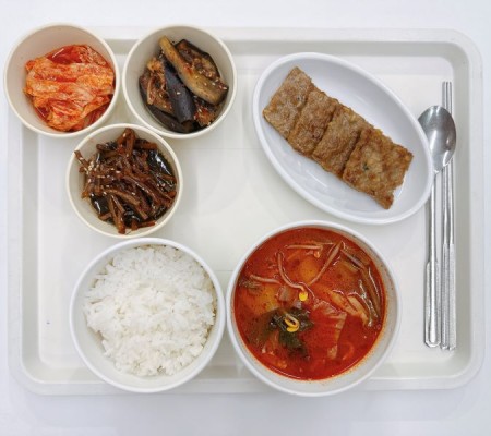 돈육김치찌개 계란찜 꽈리멸치볶음 열무무침 깍두기