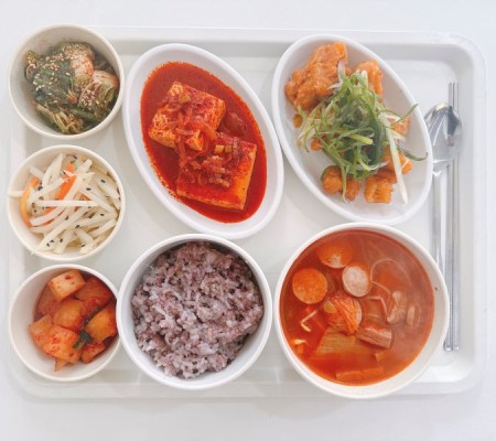 부대찌개 순살파닭 두부조림 감자채볶음 봄동겉절이 깍두기