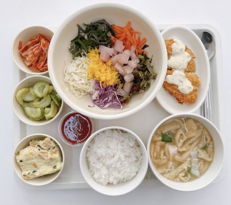 참치회덮밥 미소장국 생선까스 계란찜 백오이무침 포기김치