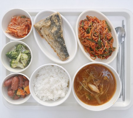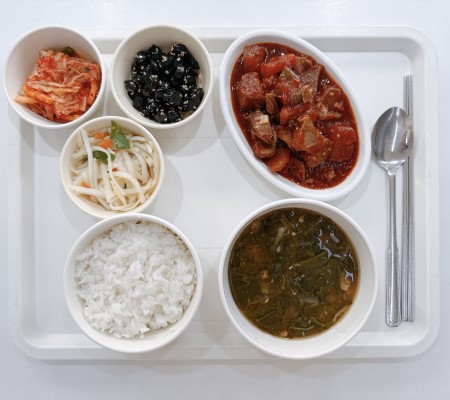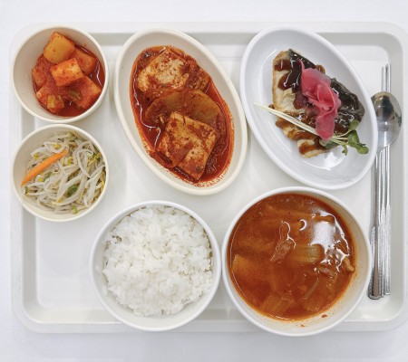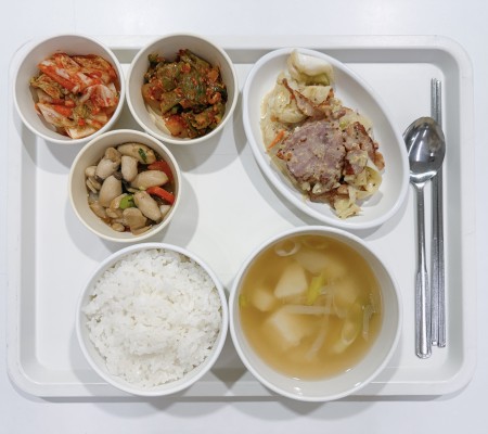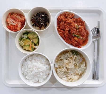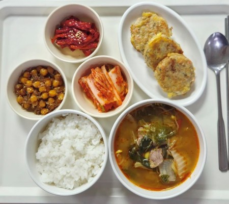 옹심이육개장 삼치구이 비빔당면 비엔나볶음 브로콜리참깨무침 포기김치